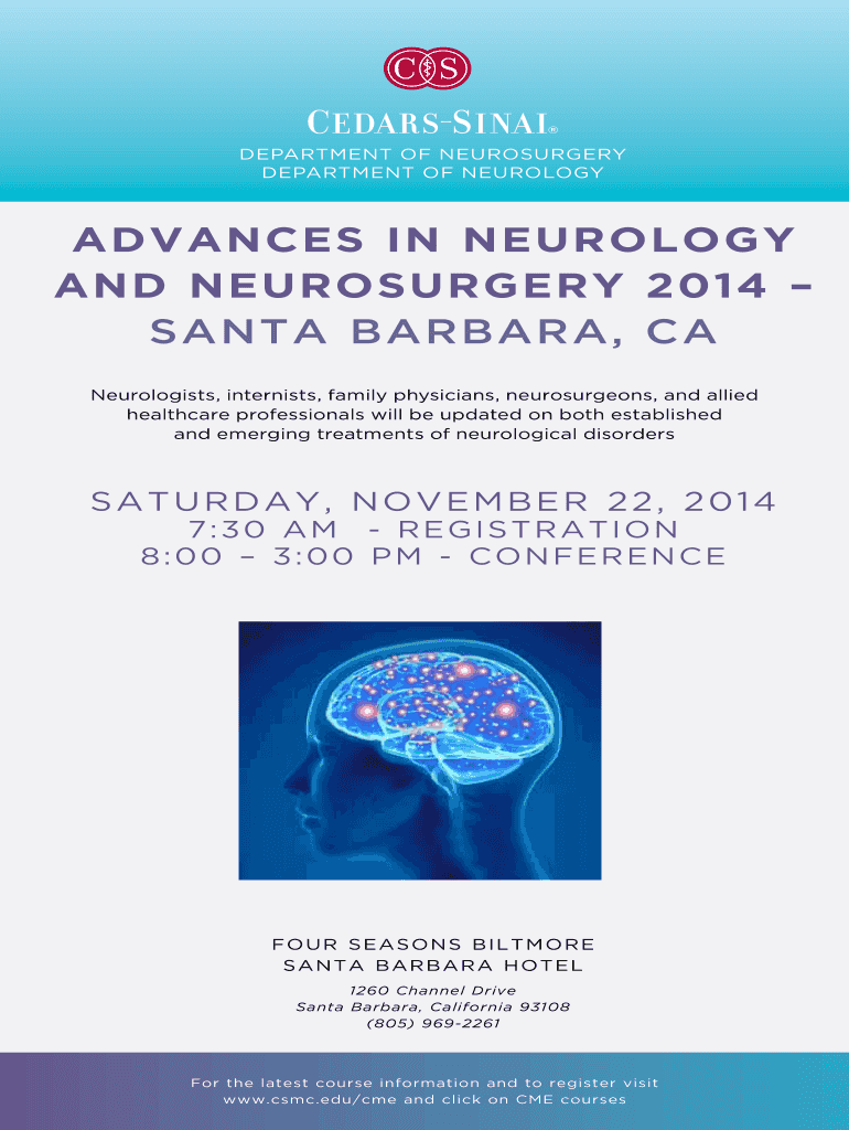 Department of Neurosurgery Department of Neurology ADVANCES IN NEUROLOGY AND NEUROSURGERY 2014 Santa Barbara, ca Neurologists, internists, family physicians, neurosurgeons, and allied healthcare professionals