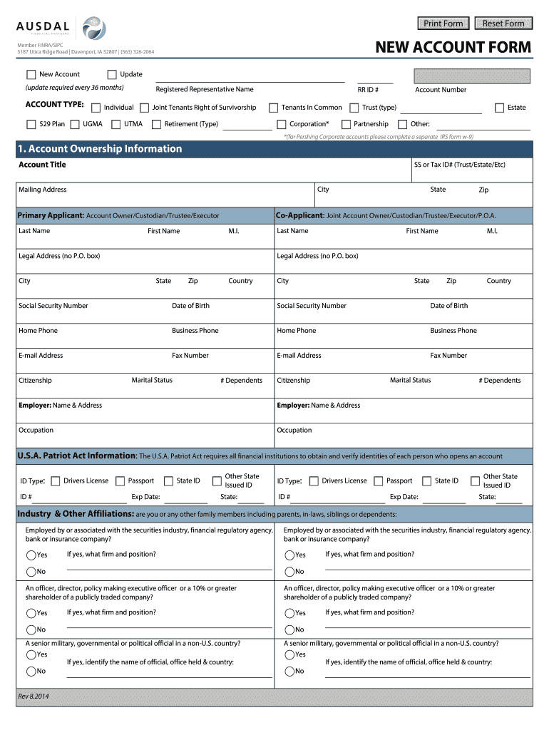 Print Form NEW ACCOUNT FORM Member FINRA/SIPC 5187 Utica Ridge Road Davenport, IA 52807 (563) 3262064 New Account Update (update required every 36 months) ACCOUNT TYPE: 529 Plan Reset Form Registered