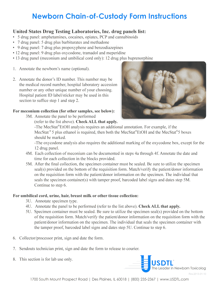 Newborn ChainofCustody Form Instructions United States Drug Testing Laboratories, Inc. drug panels list: 5 drug panel: amphetamines, cocaine, opiates, PCP and cannabinoids 7 drug panel: 5 drug plus
