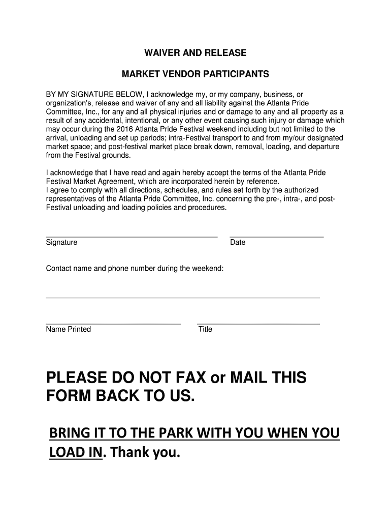 organizations, release and waiver of any and all liability against the Atlanta Pride