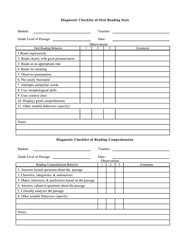 Review the diagnostic checklist thoroughly to familiarize yourself with the categories and items.