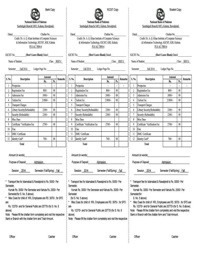 Bank Copy VISIT Copy Student Copy National Bank of Pakistan Sumbalgah Branch(1683), Kahuna, Rawalpindi. National Bank of Pakistan Sumbalgah Branch(1683), Kahuna, Rawalpindi. National Bank of Pakistan