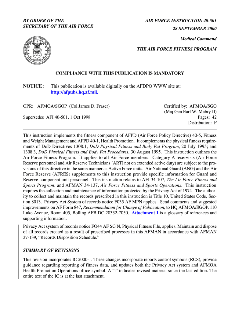 Get the free AIR FORCE INSTRUCTION 40-501