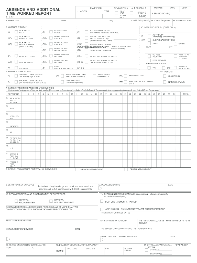 All full-time and part-time California state employees are eligible to use this form for reporting absences or additional hours worked during any pay period.