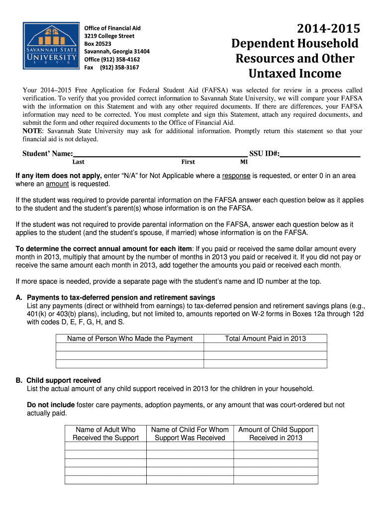 Students attending Savannah State University who have submitted a FAFSA application are typically required to complete this form.