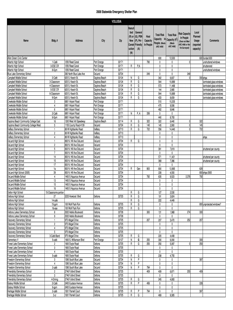 2008 Statewide Emergency Shelter Plan VOL USIA Name Allen Green Civic Center Atlantic High School Atlantic High School Atlantic High School Blue Lake Elementary School Campbell Middle School Campbell