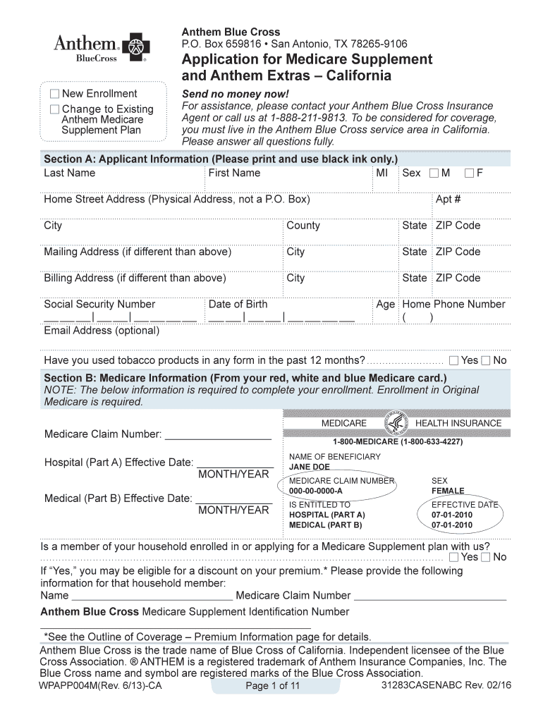 Get the free Application for Medicare supplementand Anthem Extras California. Application for Med...