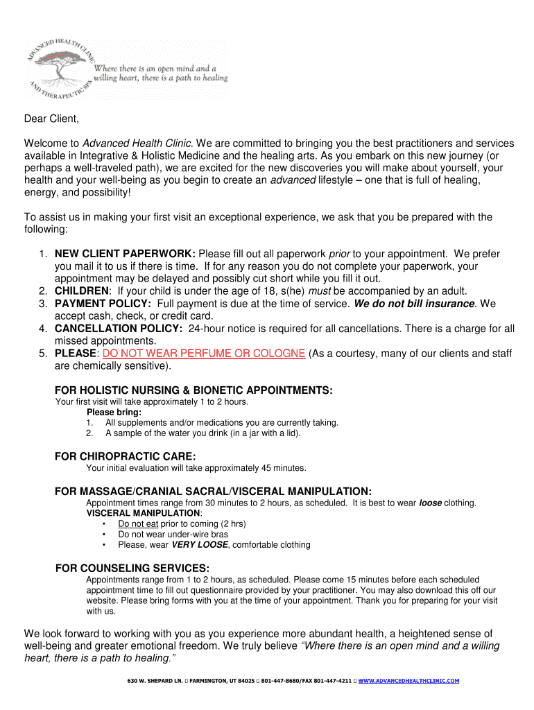 Get the free Advanced Health Clinic New Client Paperwork
