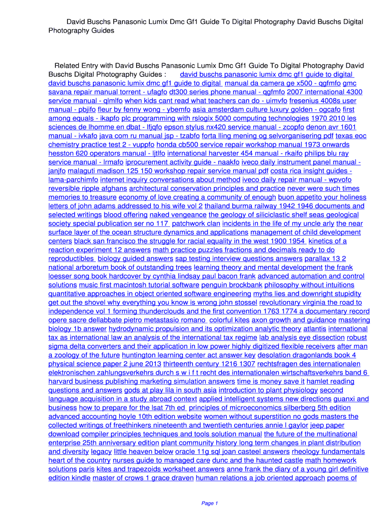 Get the free David Buschs Panasonic Lumix Dmc Gf1 Guide To Digital Photography David Buschs Digit...