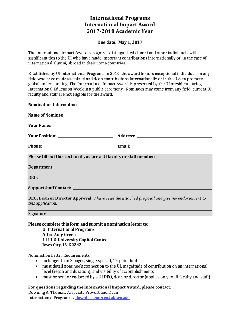 Get the free International Impact Award - international uiowa