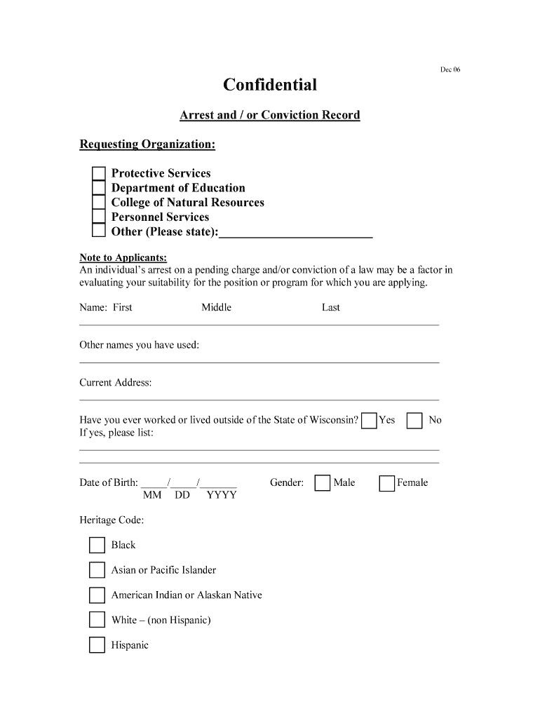Key Features of the Wisconsin Arrest and Conviction Record Request Form