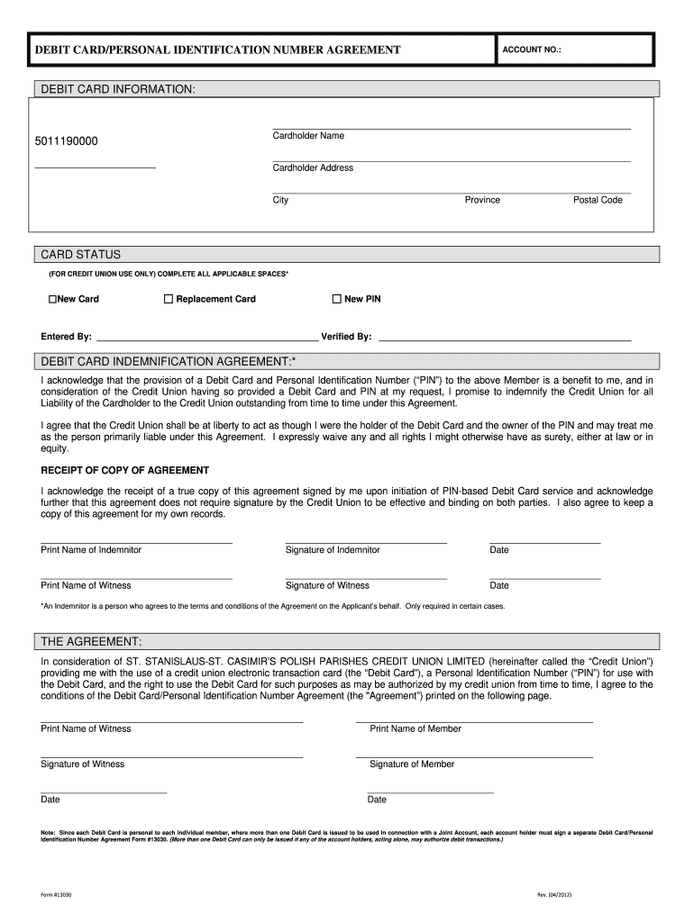 Get the free Debit Card Personal Identification Number Agreement