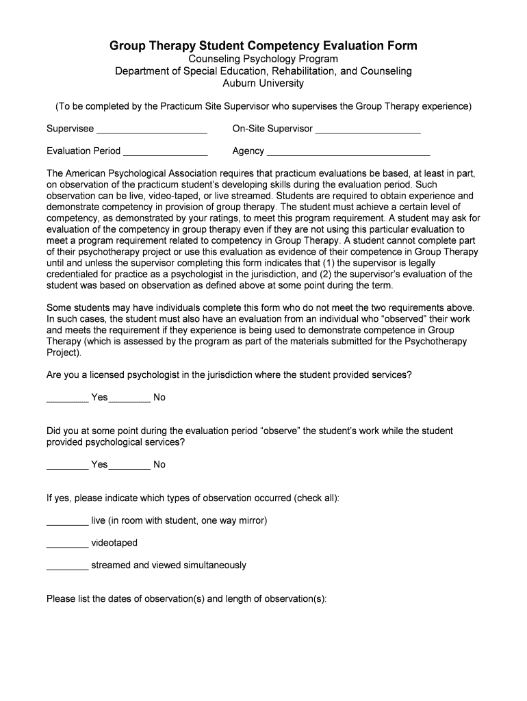 Get the free Group Therapy Evaluation - Auburn University College of Education - education auburn