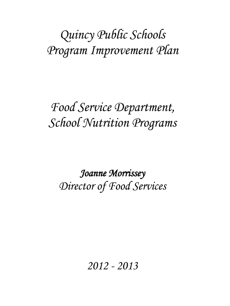 Quincy Public Schools Program Improvement Plafond Service Department, School Nutrition Programs Joanne MorrisseyDirector of Food Services2012 2013Quincy Public SchoolsProgram Improvement Playable
