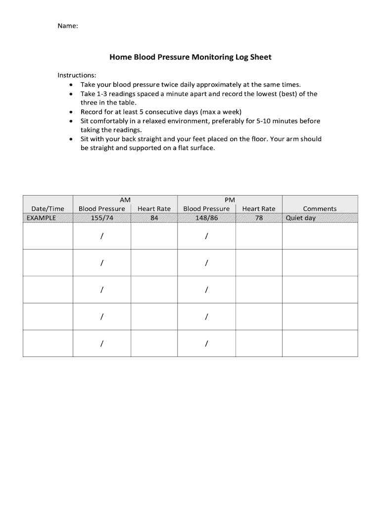 Get the free Home Blood Pressure Monitoring Log Sheet
