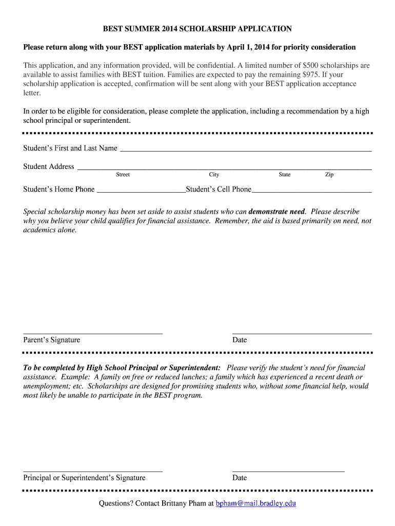 Please return along with your BEST application materials by April 1, 2014, for priority consideration