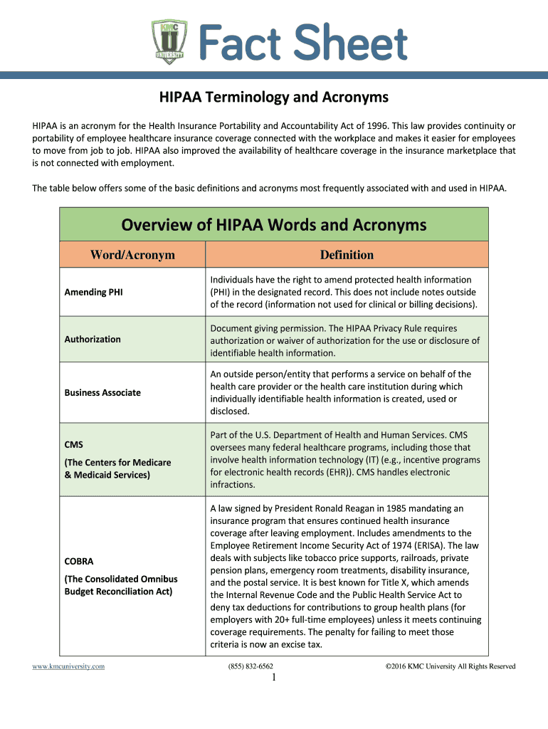 Get the free Overview of HIPAA Words and Acronyms - KMC University