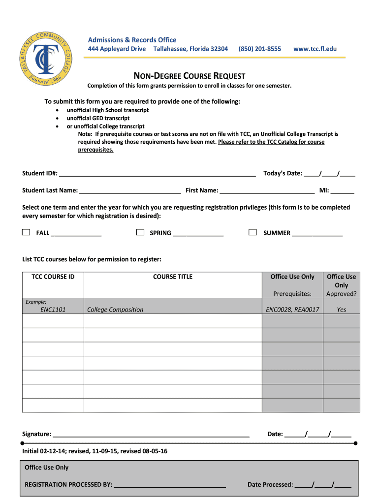 Get the free NON-DEGREE COURSE REQUEST - Tallahassee Community College