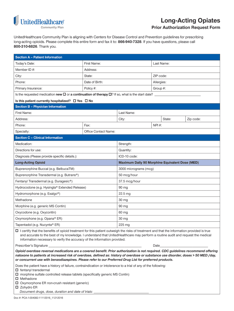 Contacting Opiates Prior Authorization Request Form UnitedHealthcare Community Plan is aligning with Centers for Disease Control and Prevention guidelines for prescribing long acting opioids. Please