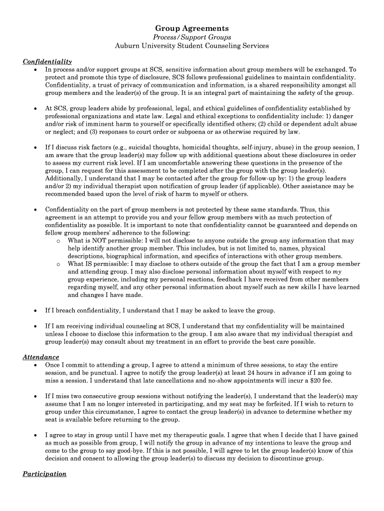 Get the free Group Agreements Process/Support Groups Auburn University ...