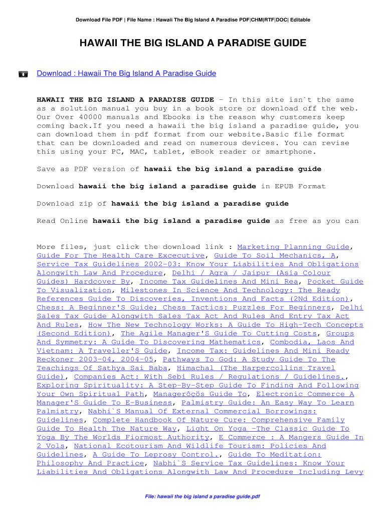 Download File PDF File Name : Hawaii The Big Island A Paradise PDF CHM RTF DOC Editable HAWAII THE BIG ISLAND A PARADISE GUIDE Download : Hawaii The Big Island A Paradise Guide HAWAII THE BIG ISLAND