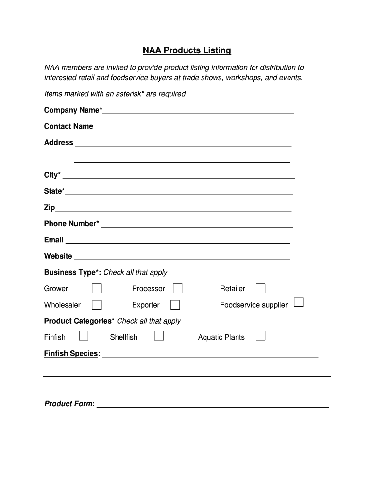 Naa Products Listing is not the form you're looking for?Search for another form here.