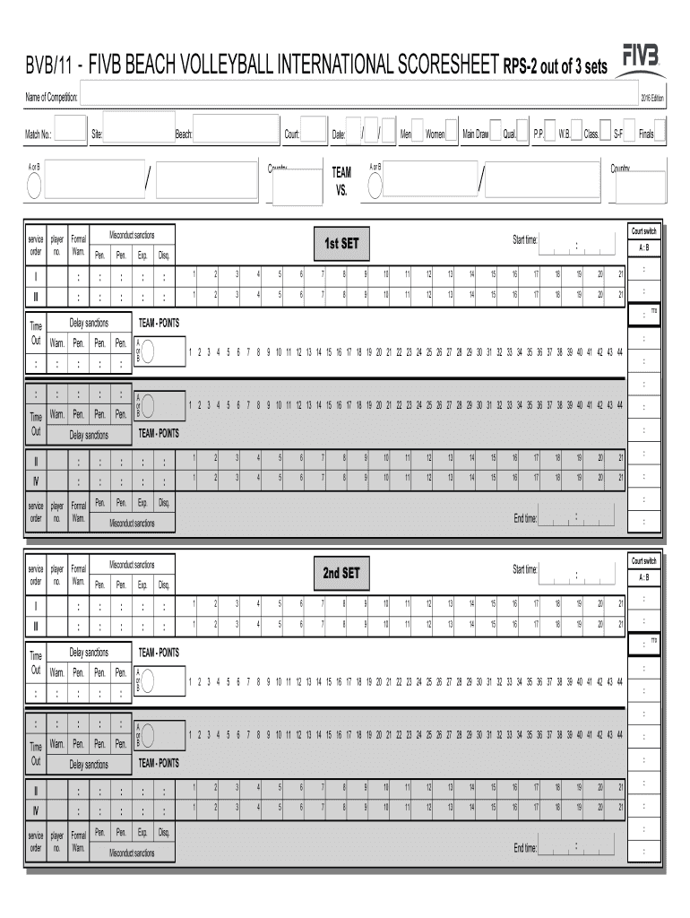 Get the free BVB/11 FIVB BEACH VOLLEYBALL INTERNATIONAL SCORESHEET 2 ...
