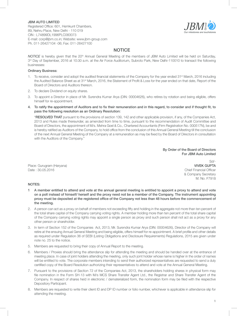Get the free NOTICE - jbm-group.com