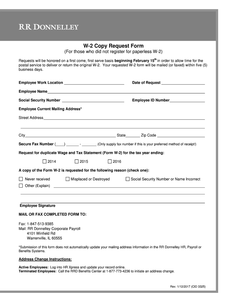 Get the free W-2 Replacement Request Form 2017 01 12 CID3325.docx