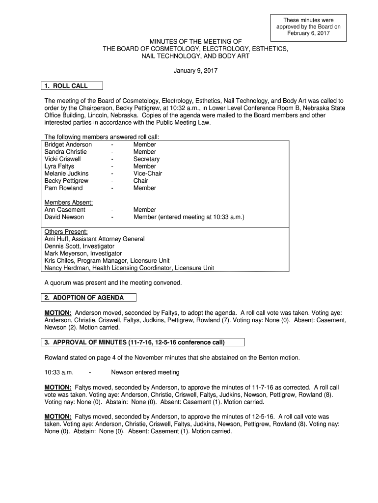 THE BOARD OF COSMETOLOGY, ELECTROLYTE, AESTHETICS,