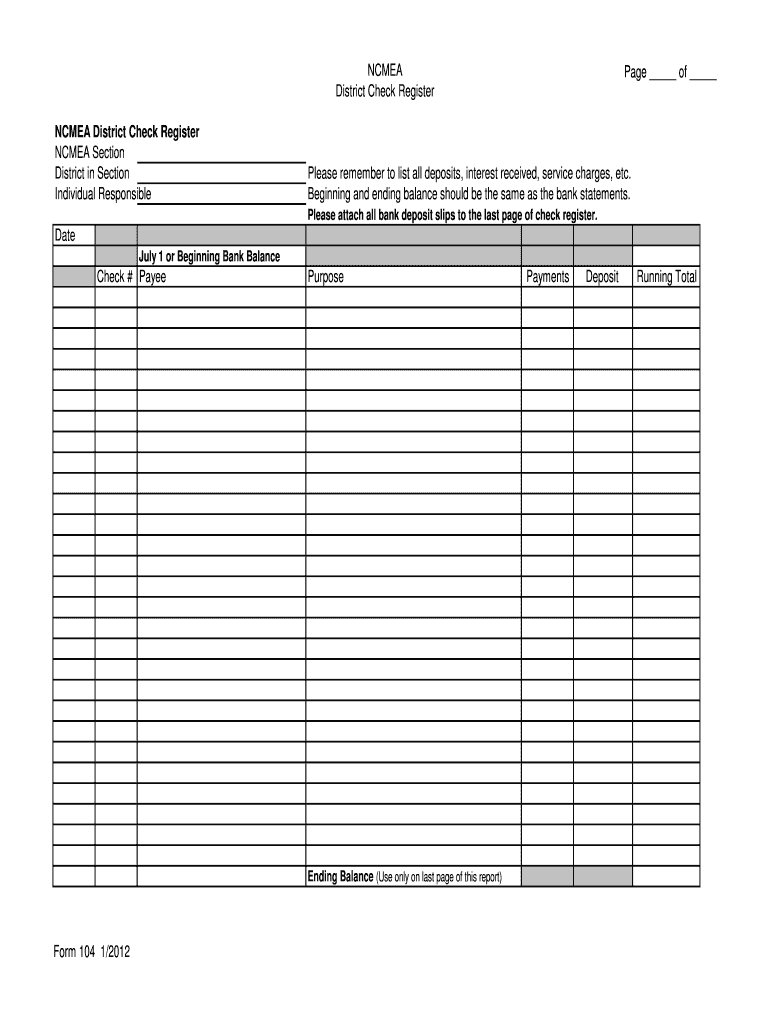 Get the free NCMEA District Check Register Page of Form 104 1 ... - ncmea