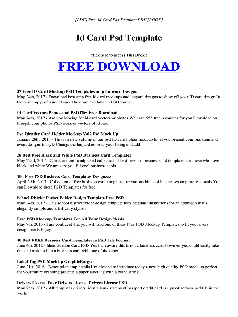 PDF Free I'd Card PSD Template PDF BOOK I'd Card PSD Template click here to access This Book : FREE DOWNLOAD 27 Free ID Card Lockup PSD Templates amp Lanyard Designs May 24th, 2017 Download best amp