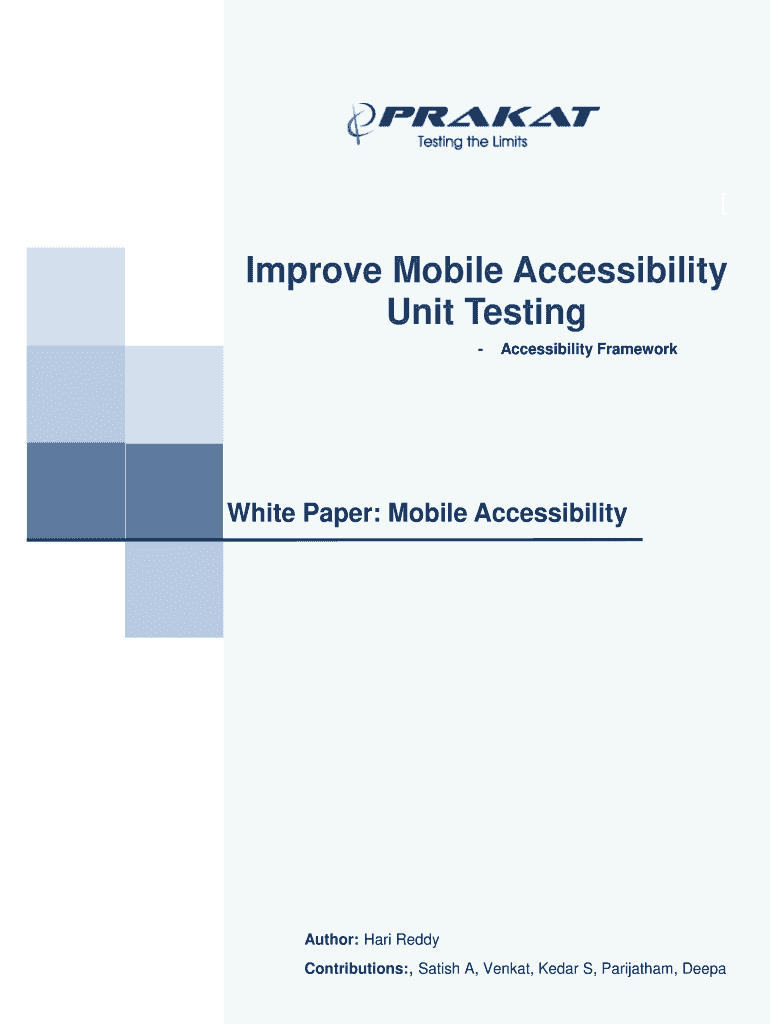 Improve Mobile Accessibility Unit Testing Accessibility Framework White Paper: Mobile Accessibility Author: Hard Reddy Contributions:, Salish A, Vent, Cedar S, Parijatham, Deep Abstract Mobile Accessibility