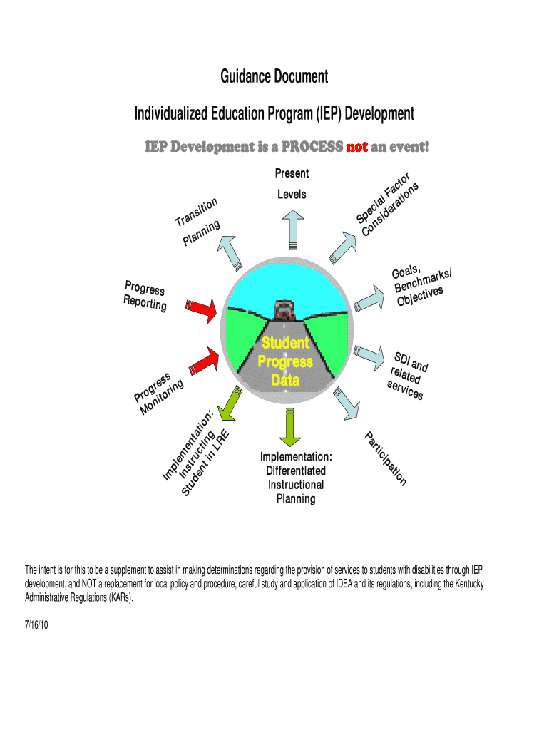 Guidance Document Individualized Education Program (IEP) Development IEP Development is a PROCESS not an event! Present n ITIL an s Try g NIN l an P Levels tor ac o n s l F ti c i a d her an e Sp