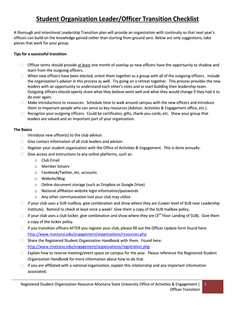 Provide training or resources to the incoming leaders/officers to help them understand their roles and responsibilities.