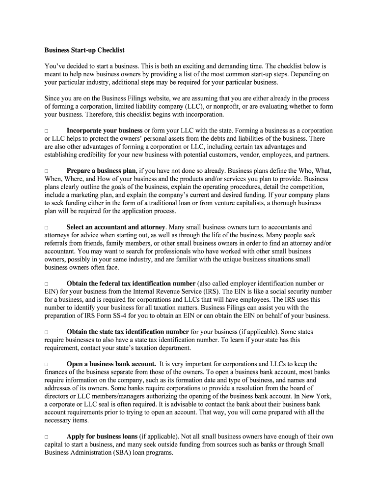 Edit your business start-up checklist form online