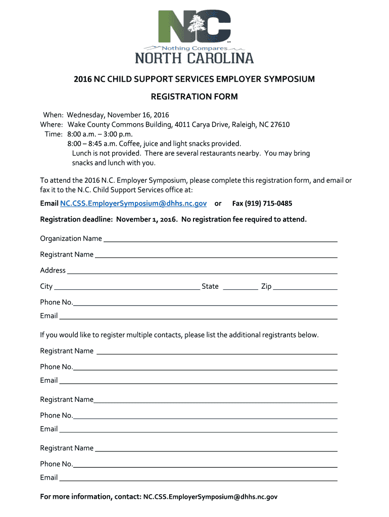 North Carolina Child Support Services 2016 A meeting of child support professionals and employers to discuss topics relating to child support. WEDNESDAY, NOVEMBER 16, 2016 8 a.m.3 p.m. WAKE COUNTY