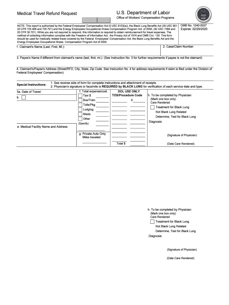 U.S. Department of Labor Medical Travel Refund Request Reset Print Office of Workers Compensation Programs NOTE: This report is authorized by the Federal Employees Compensation Act (5 USC 8103(a)),