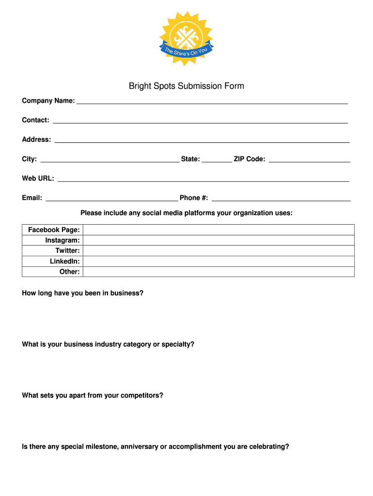 Fill out your bright spots submission form online with pdfFiller!