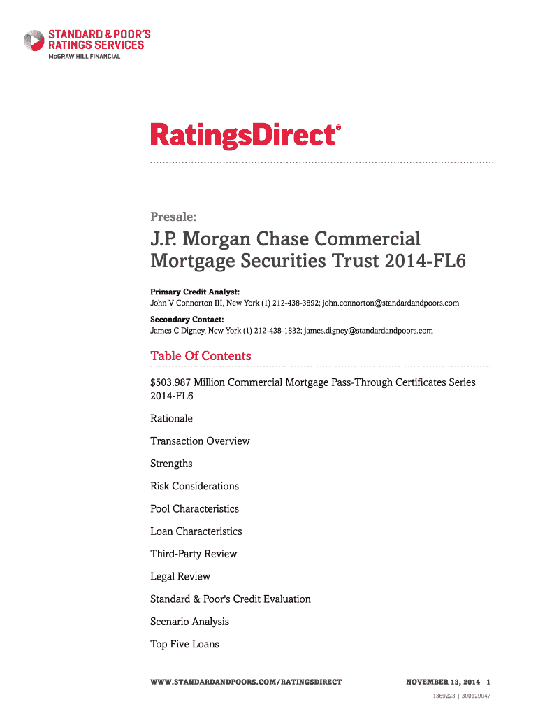 Presale: J. P Morgan Chase Commercial. Mortgage Securities Trust 2014FL6 Primary Credit Analyst: John V Connor ton III, New York (1) 2124383892; john. Contortion standardandpoors.com Secondary Contact: