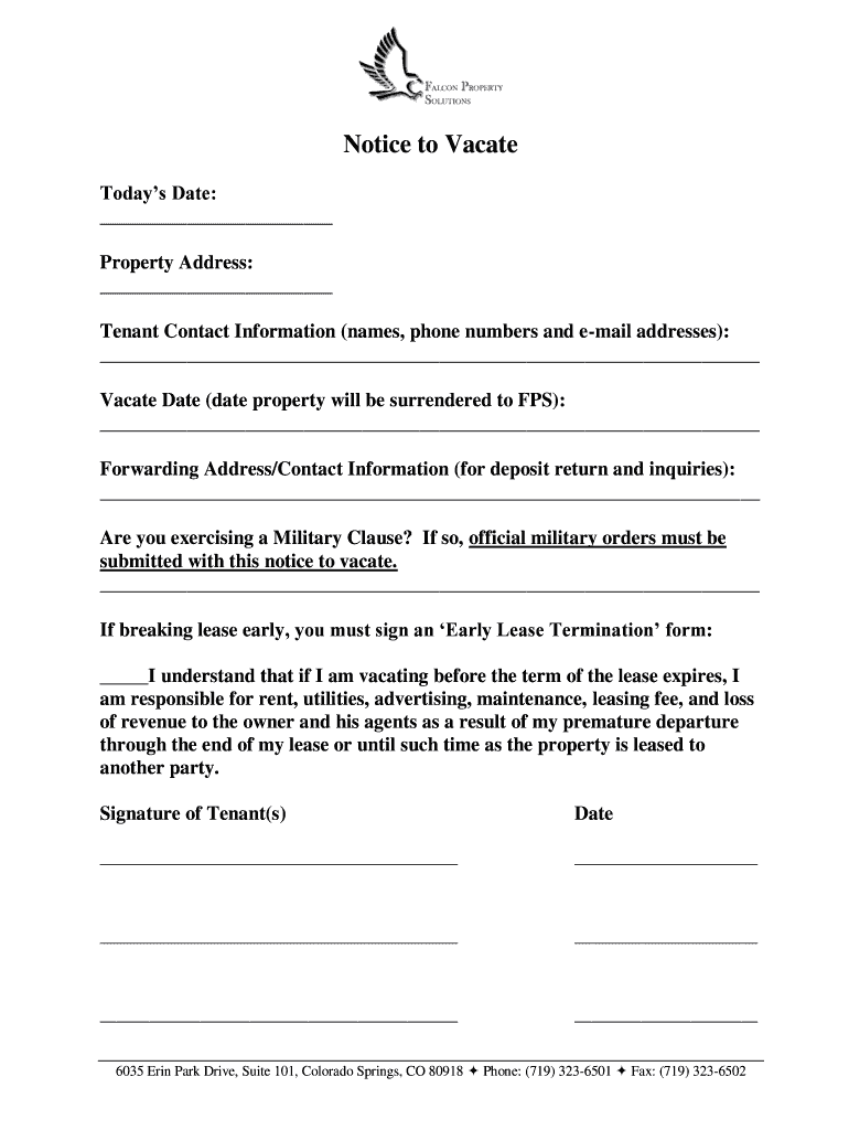 Common mistakes include forgetting to include the vacate date, omitting contact information, and failing to sign the document. Make sure to review all fields carefully before submission.