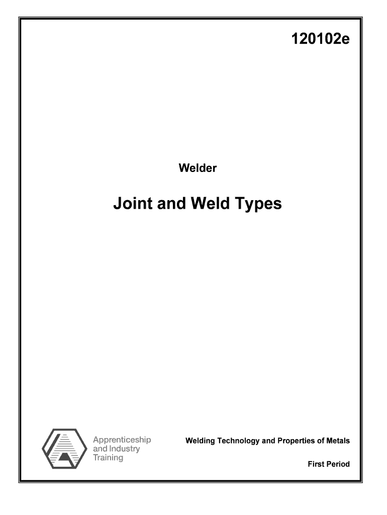 120102e Welder Joint and Weld Types Welding Technology and Properties of Metals First Period Table of Contents Objective One ...............................................................................................................................................