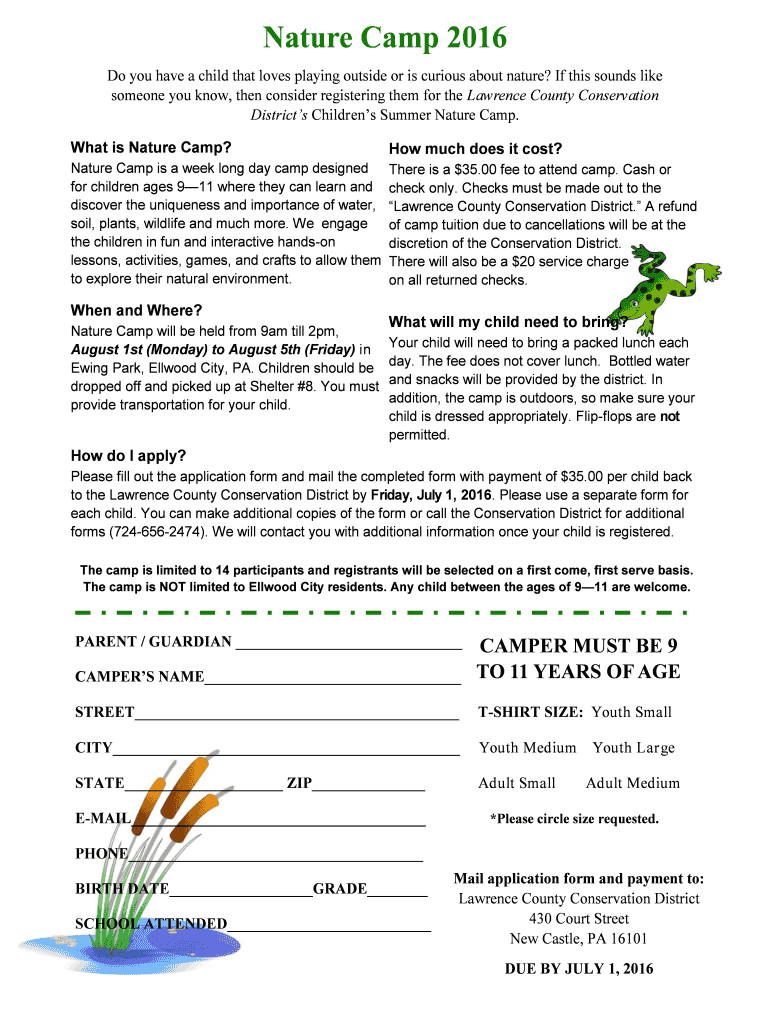Fill out your nature camp 2016 online with pdfFiller!