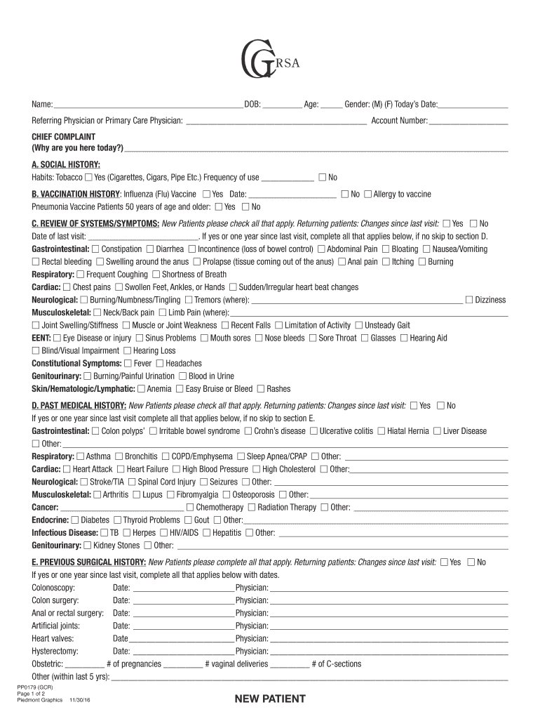 Name: DOB: Age: Gender: (M) (F) Today's Date: Referring Physician or Primary Care Physician: Account Number: CHIEF COMPLAINT (Why are you here today?) A. SOCIAL HISTORY: Habits: Tobacco Yes (Cigarettes,