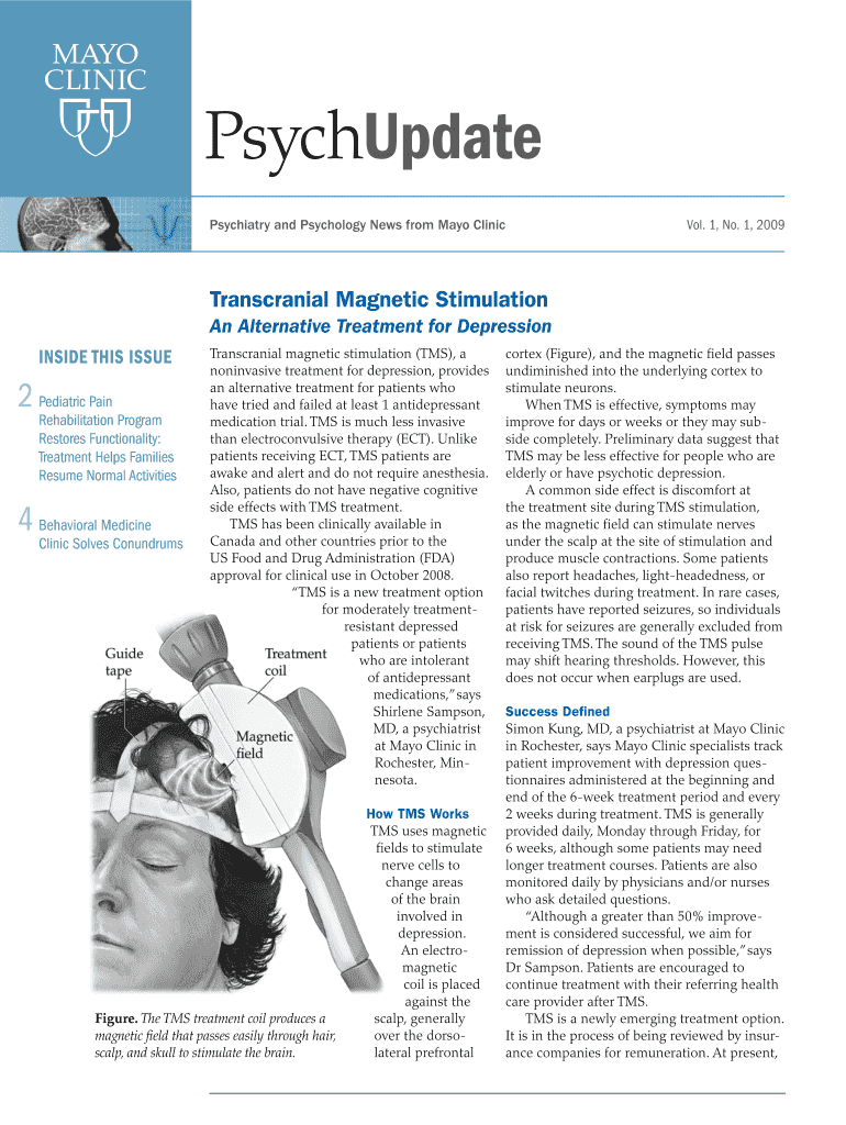 Vol. 1, No. 1, 2009Psychiatry and Psychology News from Mayo ClinicTranscranial Magnetic Stimulation