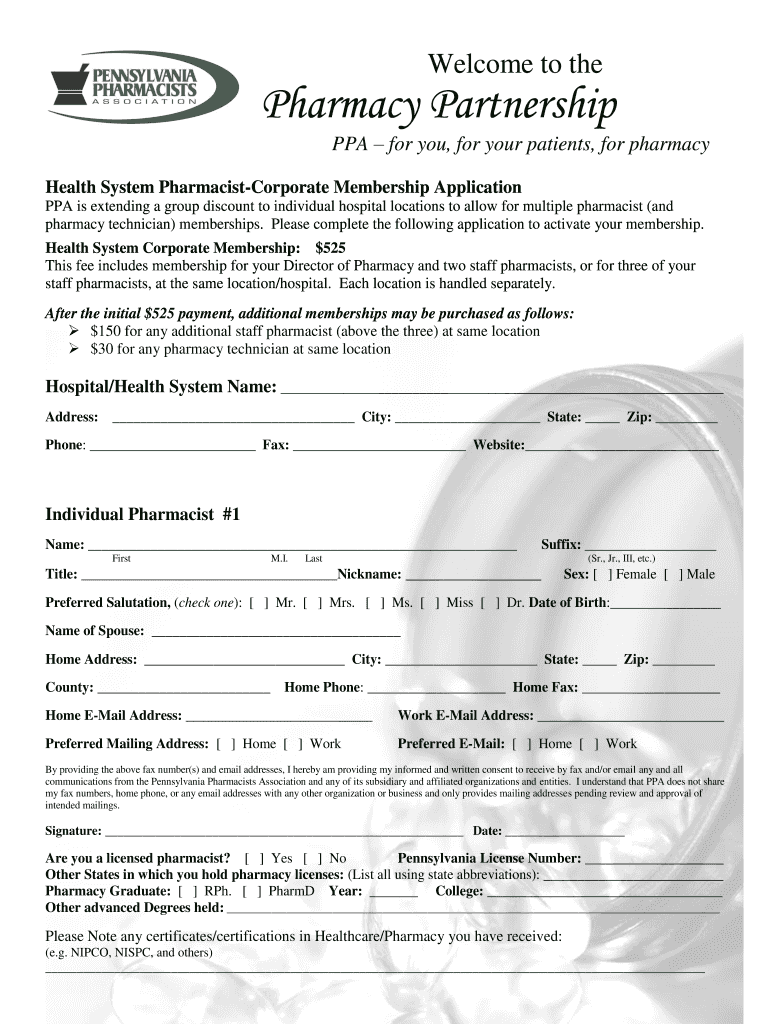 Welcome to the Pharmacy Partnership PPA for you, for your patients, for pharmacy Health System PharmacistCorporate Membership Application PPA is extending a group discount to individual hospital locations