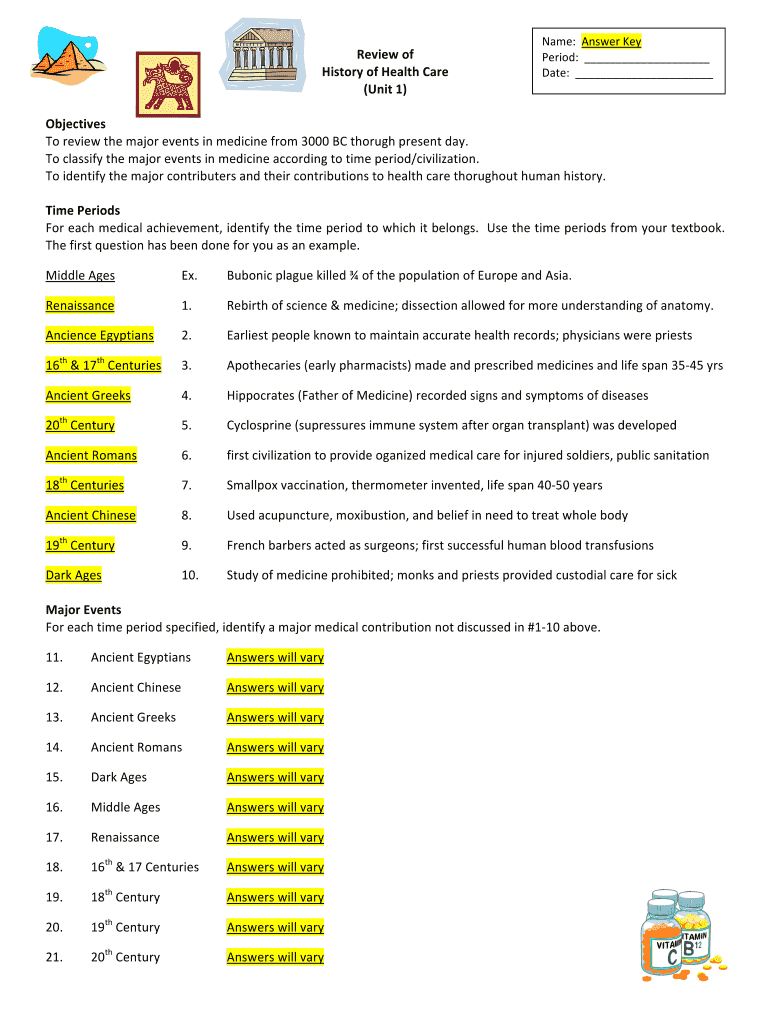 Get the free Answer Key Review of History of Health Care