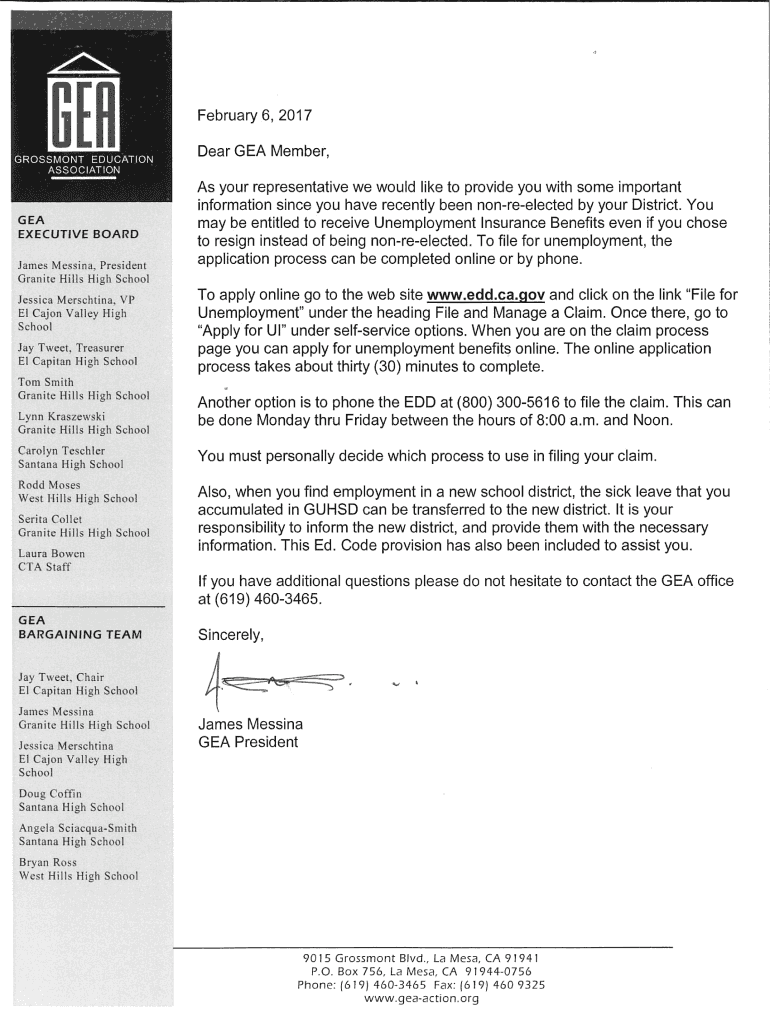To:Ms. Julie Mothership Assistant Superintendent Human Resources Division Grossman Union High School DistrictSubject:Notice of Non ReElectionDate:February 21, 2017I, FULL NAME, am I resigning from