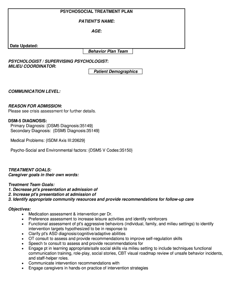 Get the free PSYCHOSOCIAL TREATMENT PLAN