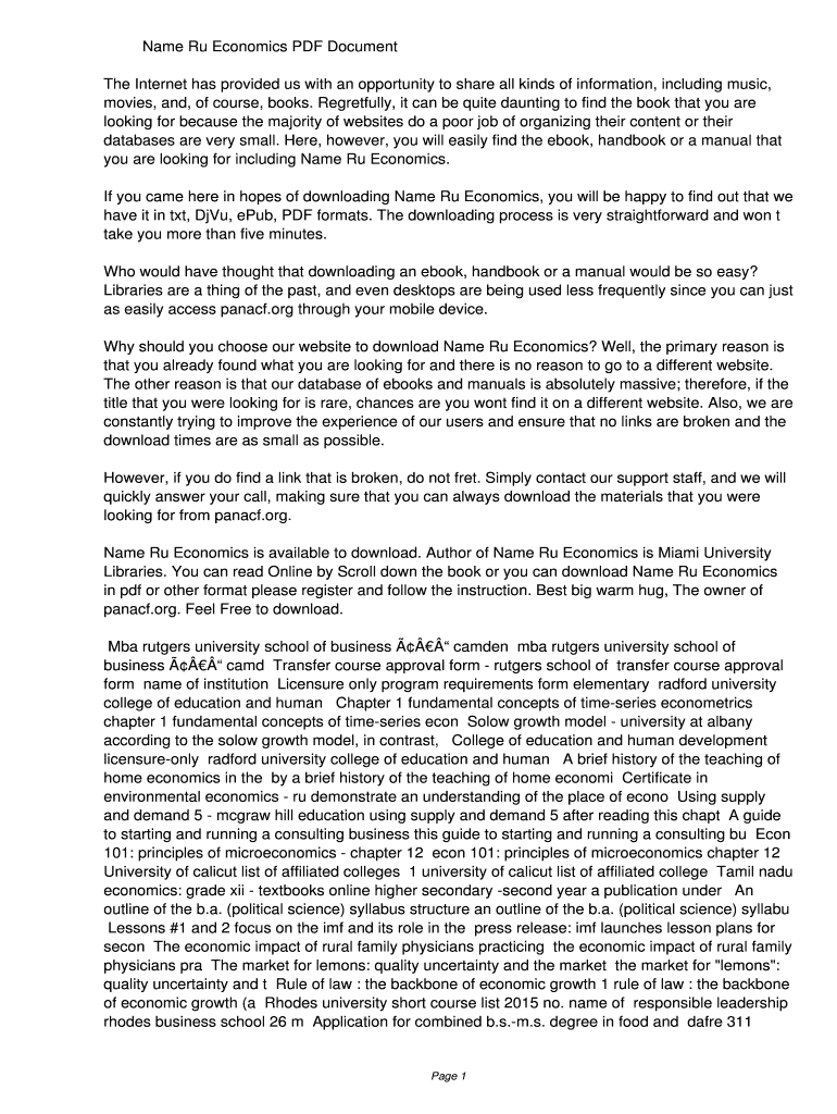 Name Ru Economics PDF Document The Internet has provided us with an opportunity to share all kinds of information, including music, movies, and, of course, books. Regretfully, it can be quite daunting